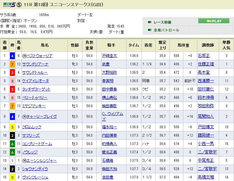 堅いレースとして例年人気上位馬が活躍するユニコーンSですが、今年は伏兵馬が素晴らしい走りを見せてくれましたね。